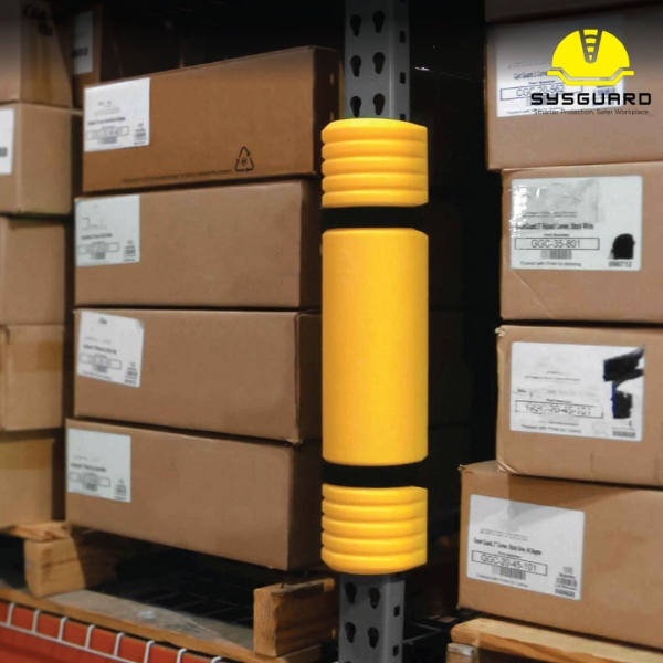 The McCue Shock Absorbing Rack Guards protect pallet racking from forklift impacts. A durable solution that reduces damage, improves safety, and extends rack lifespan.